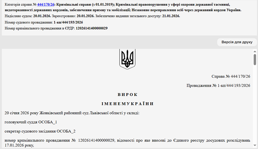 Про вердикт суду свідчить інформація із сайту Єдиного державного реєстру судових рішень.