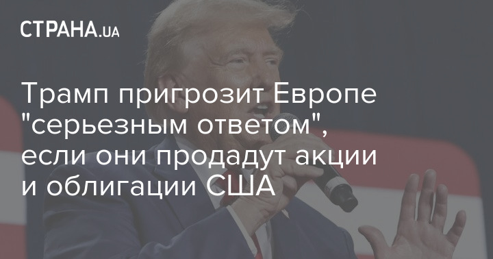 Президент США Дональд Трамп погрожує Європі "серйозною відповіддю", якщо вони продадуть американські акції та облігації.