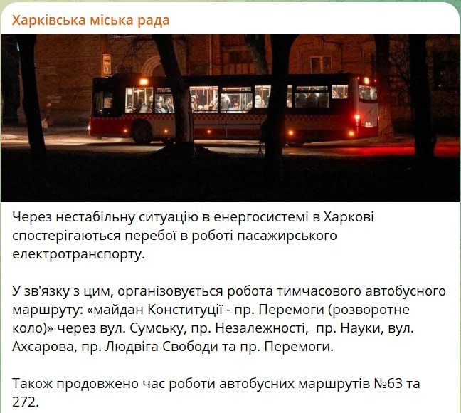 Міськрада заявила про проблеми з електротранспортом, через які на додаткові маршрути вийшли автобуси.