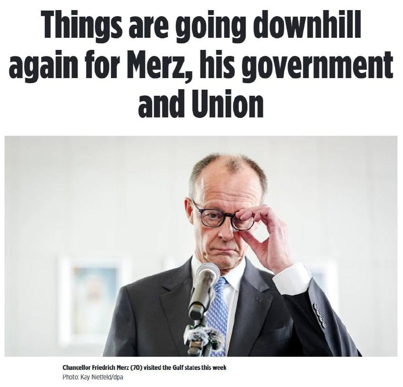 "Ситуація для канцлера ще більше погіршилася: порівняно з попереднім опитуванням оцінки його особистості падають. Згідно з цими даними, тільки 23 відсотки опитаних, як і раніше, задоволені роботою канцлера Мерця, що на п'ять процентних пунктів менше, ніж у попередньому опитуванні. З іншого боку, 67 відсотків недопущено. задоволеності роботою Мерця (у січні він був на чотири відсоткові пункти вище) — лише швидкоплинне явище", - йдеться в матеріалі.
