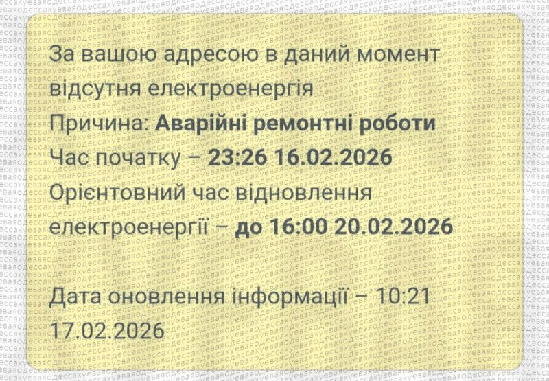 12:10 У частині Одеси після нічного удару по об'єктах енергетики світла може не три доби, повідомляє чат-бот ДТЕК.
