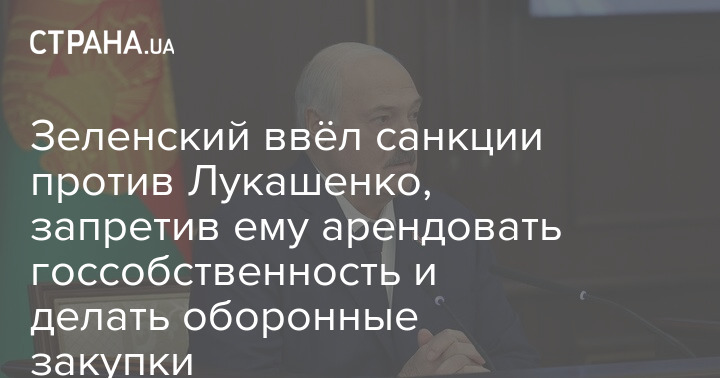 Зеленський ввів санкції проти Лукашенка, заборонивши йому орендувати держвласність та робити оборонні закупівлі
