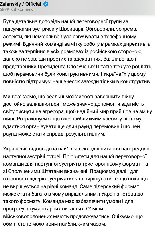 Раніше Зеленський повідомив, що наступні переговори України та РФ плануються до кінця лютого.