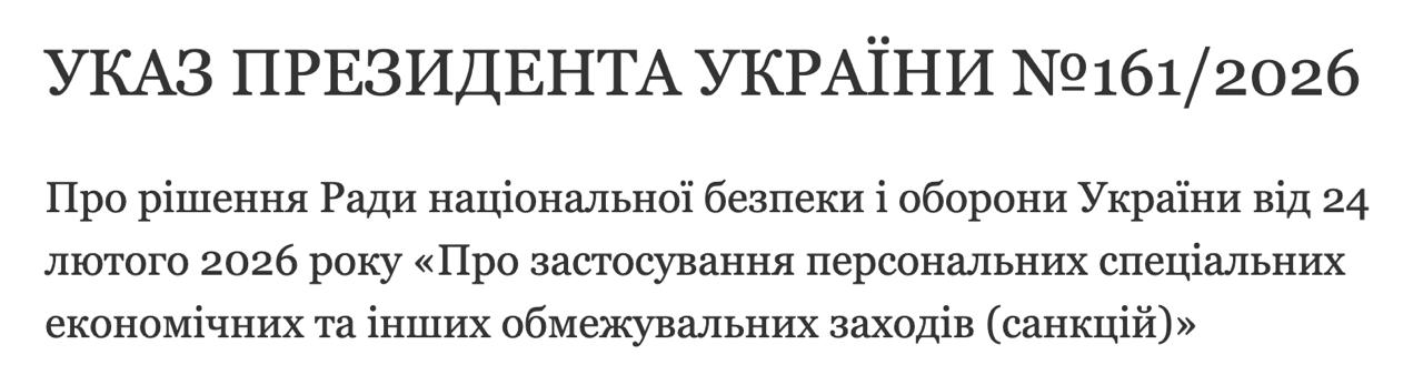 Відповідний указ №161/2026 опубліковано на сайті президента.