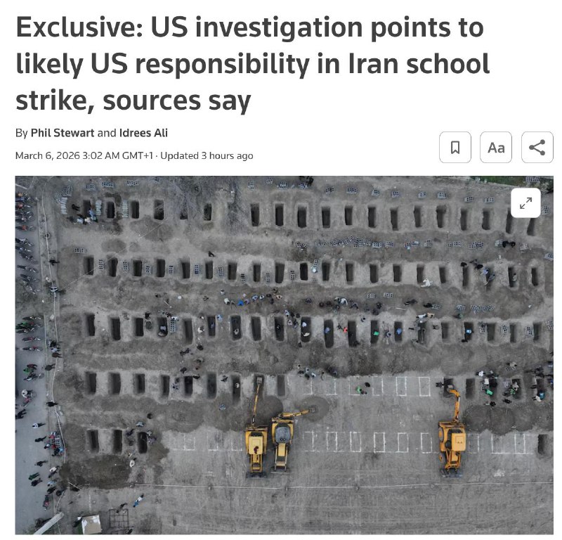 "Військові слідчі вважають ймовірним, що Збройні сили США несуть відповідальність за атаку на іранську школу для дівчаток, але остаточного висновку у цій справі вони ще не дійшли і розслідування не завершено", - йдеться у матеріалі агентства.