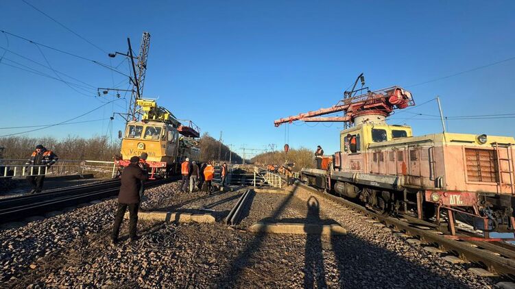 "Наразі роботи ще тривають у Житомирській області, де зафіксовано суттєві пошкодження залізничного полотна через влучення великої кількості дронів", - повідомляє "Укрзалізниця".