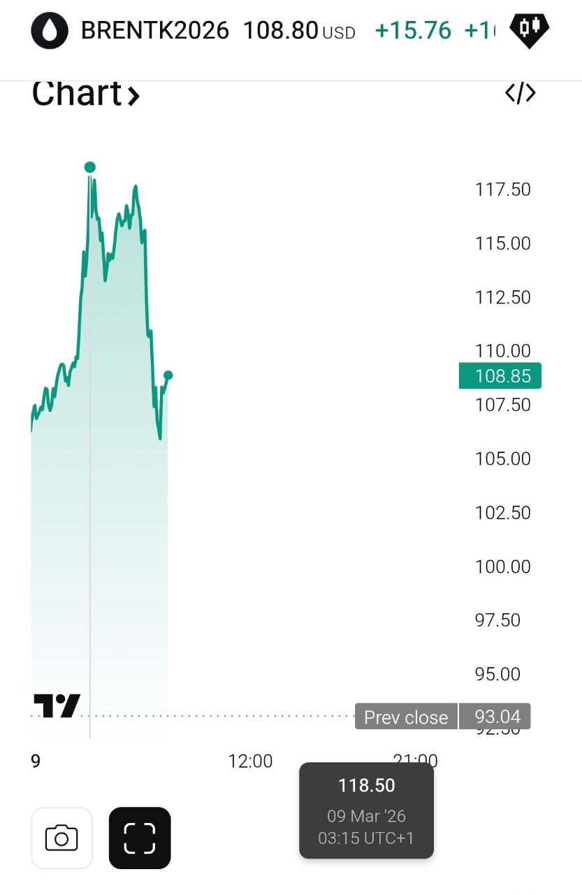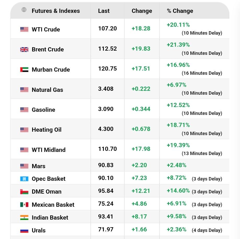 Крім того, на тлі війни з Іраном, що триває, подорожчали всі види нафти. Зокрема сильно подорожчала американська нафта марки WTI - до 108 доларів (зростання на 17%).