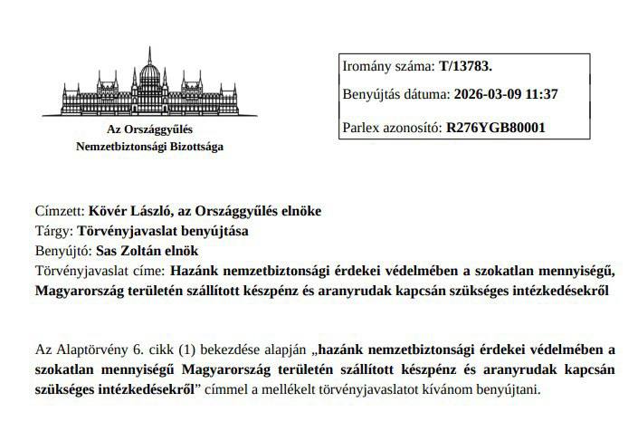 "Враховуючи, що походження, пункт призначення, мета використання та передбачуване призначення незвичайної кількості готівки та золота, а також законне право на їх перевезення до Угорщини не могли бути встановлені на місці, і що перевезення здійснювалося не відповідно до стандартної міжнародної практики... необхідно з'ясувати можливе їх використання в Угорщині. задовільне з'ясування походження, призначення, мети використання та призначення активів, що утримуються", - пояснив Кочиш завдання своєї ініціативи.
