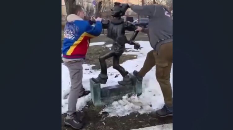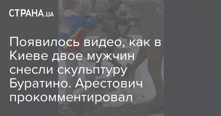 З'явилося відео, як у Києві двоє чоловіків знесли скульптуру Буратіно. Арештович прокоментував