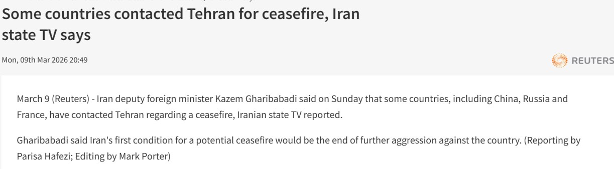 Раніше Іран висловив готовність до ведення тривалої війни проти Сполучених Штатів. Водночас у Тегерані додали, що арабські країни Перської затоки та інші держави мають чинити тиск на США, щоб покласти край війні, бо інакше вони зазнають серйозних збитків.