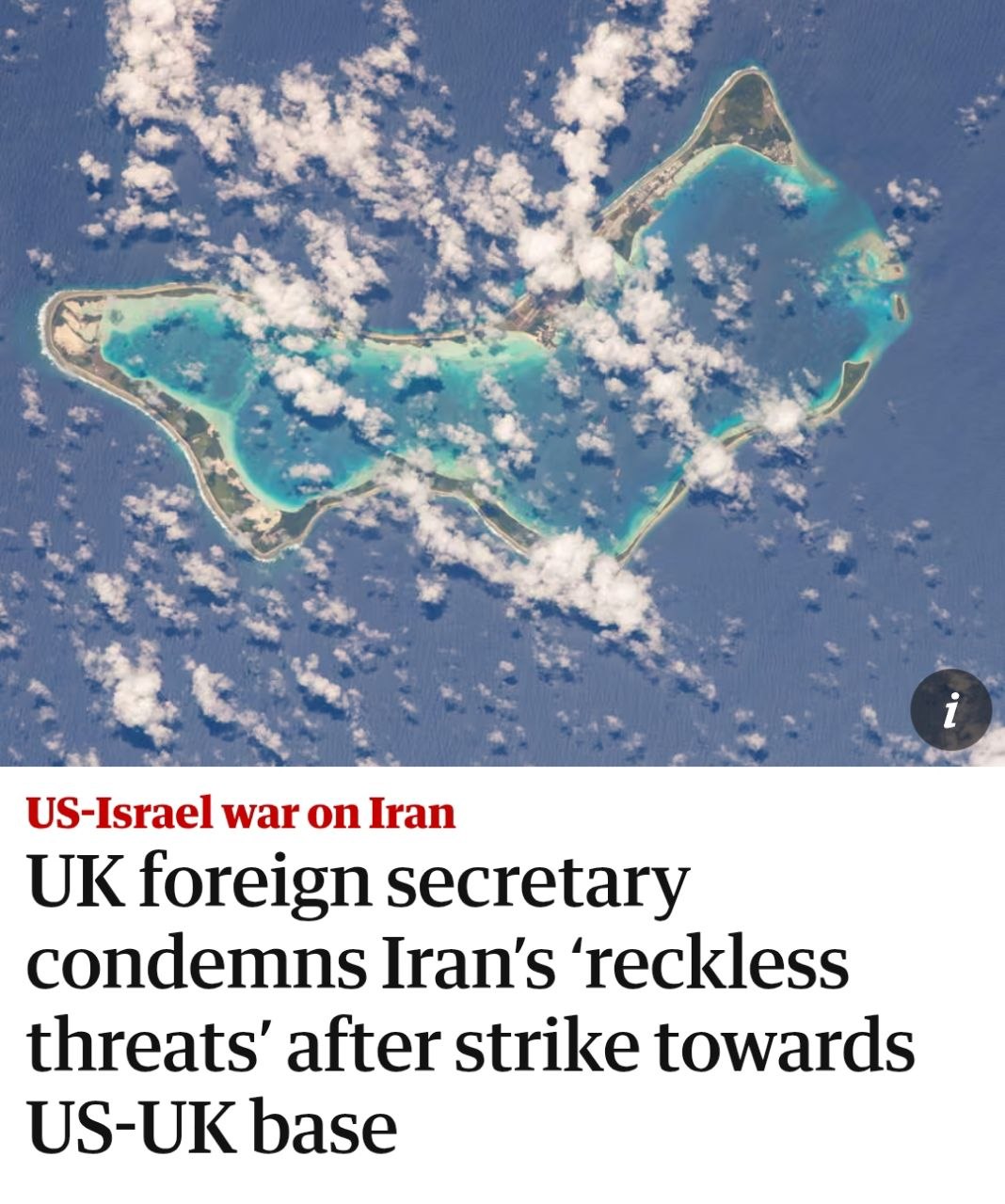 Заяви Купер пролунали на тлі спроби іранського удару по спільній американсько-британській базі Дієго Гарсія.