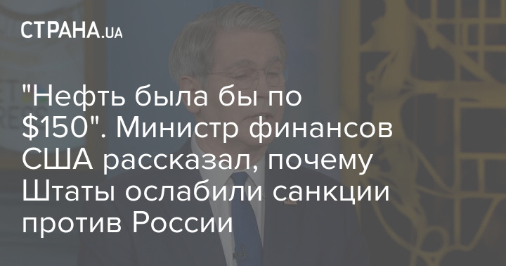 "Нафта була б по $150". Міністр фінансів США розповів, чому Штати послабили санкції проти Росії
