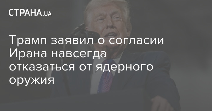 Президент США Дональд Трамп заявив про згоду Ірану на те, що "у нього ніколи не буде ядерної зброї".