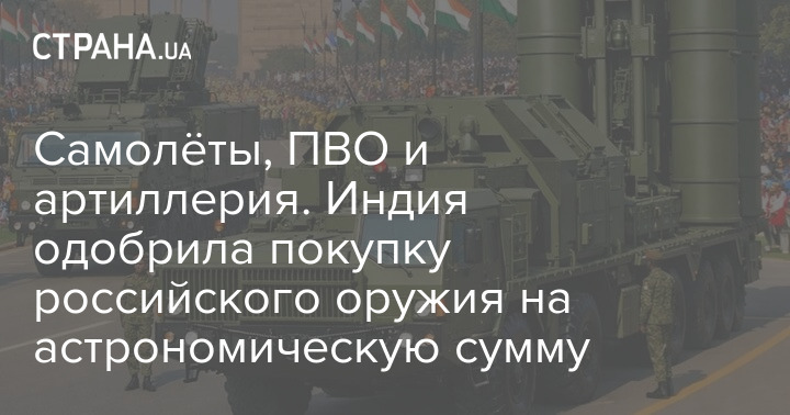 Індія 27 березня схвалила великий пакет оборонних закупівель на 2,38 трлн. рупій, або близько 25 млрд доларів. Рішення ухвалила рада з оборонних закупівель при Міністерстві оборони Індії. У пакет увійшли транспортні літаки, російські зенітні ракетні комплекси С-400, ударні безпілотники, танкові боєприпаси, артилерійські системи, засоби повітряного спостереження, продовження ресурсу Су-30 та техніка для берегової охорони.