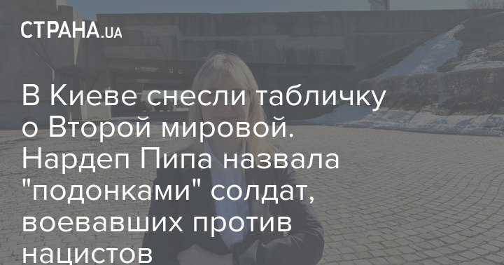 У Києві знесли табличку про Другу світову. Нардеп Піпа назвала "подонками" солдатів, які воювали проти нацистів