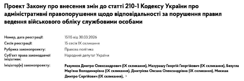 "Сьогодні жінки, які ніколи не служили, не мають військово-облікової спеціальності та не є медиками, раптом опиняються у розшуку ТЦК, у реєстрі ухилістів та отримують штрафи у розмірі 17 тисяч гривень. І такі випадки вже далеко не поодинокі", - прокоментував ситуацію Разумков.