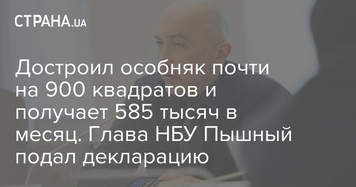 Добудував особняк майже на 900 квадратів та отримує 585 тисяч на місяць. Глава НБУ Пишний подав декларацію