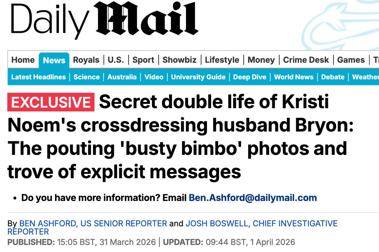 Чоловік нещодавно звільнений міністра внутрішньої безпеки Крісті Ноем Брайон під час перебування її головою відомства прилаштовував собі груди, щоб спілкуватися з жінками з фетиш-клубу.