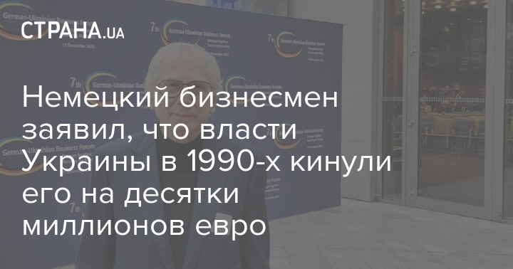 Німецький бізнесмен заявив, що влада України в 1990-х кинула його на десятки мільйонів євро