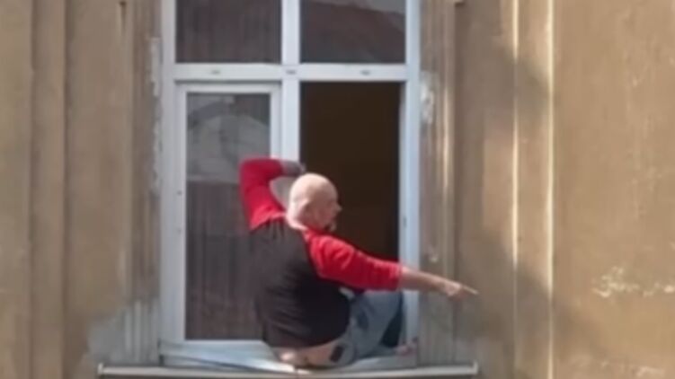 Голий американець зигував та погрожував викинутися з другого поверху у Львові. Фото та відео
