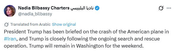 Журналістка Al Arabiya Надя Білбассі, у свою чергу, повідомила, що президенту США Дональду Трампу вже повідомили про аварію літака в Ірані і він уважно стежить за ходом пошуково-рятувальної операції.