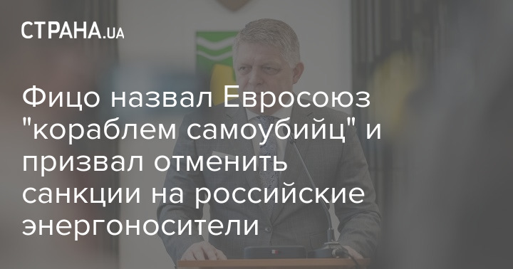 Прем'єр-міністр Словаччини Роберт Фіцо назвав Євросоюз "кораблем самогубців" та закликав Брюссель скасувати санкції на російські енергоносії.