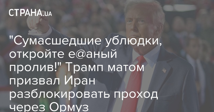 Президент США Дональд Трамп матерно закликав іранську владу відкрити Ормузьку протоку, назвавши їх "божевільними ублюдками" і пообіцявши у вівторок розбомбити електростанції Ірану.