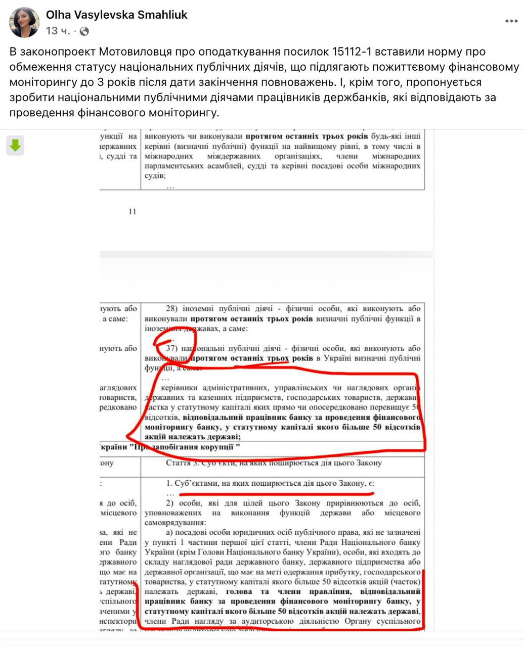 "Національні публічні діячі - фізичні особи, які виконують або виконували протягом останніх трьох років в Україні значущі публічні функції, саме: керівники адміністративних, управлінських або наглядових органів державних і казенних підприємств, господарських товариств, державних організацій, у статутному капіталі яких держава прямо або опосередковано володіє більш ніж 50 відсотками, відповідальний працівник банку за проведення фінансового моніторингу банку, у статутному капіталі якого понад 50 відсотків акцій належить державі", - йдеться у документі.