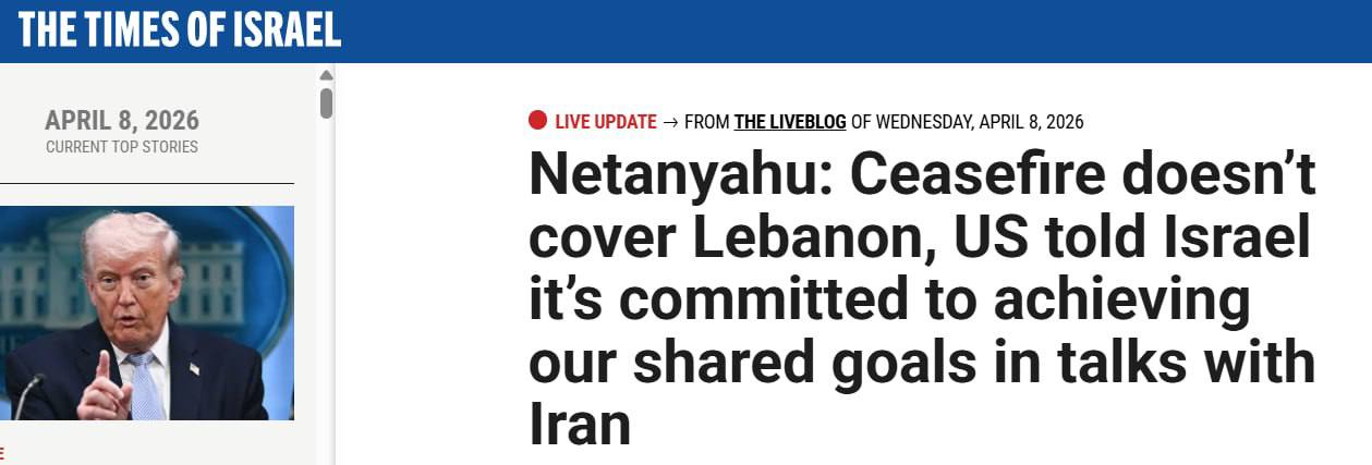 Прем'єр-міністр Ізраїлю Біньямін Нетаньяху заявив, що режим припинення вогню не поширюється на ліванський напрямок, де ізраїльська армія воює проти "Хезболли". За його словами, перемир'я діє лише щодо атак на Іран за умови відкриття Ормузької протоки та припинення іранських ударів по базах США, Ізраїлю та країн регіону.