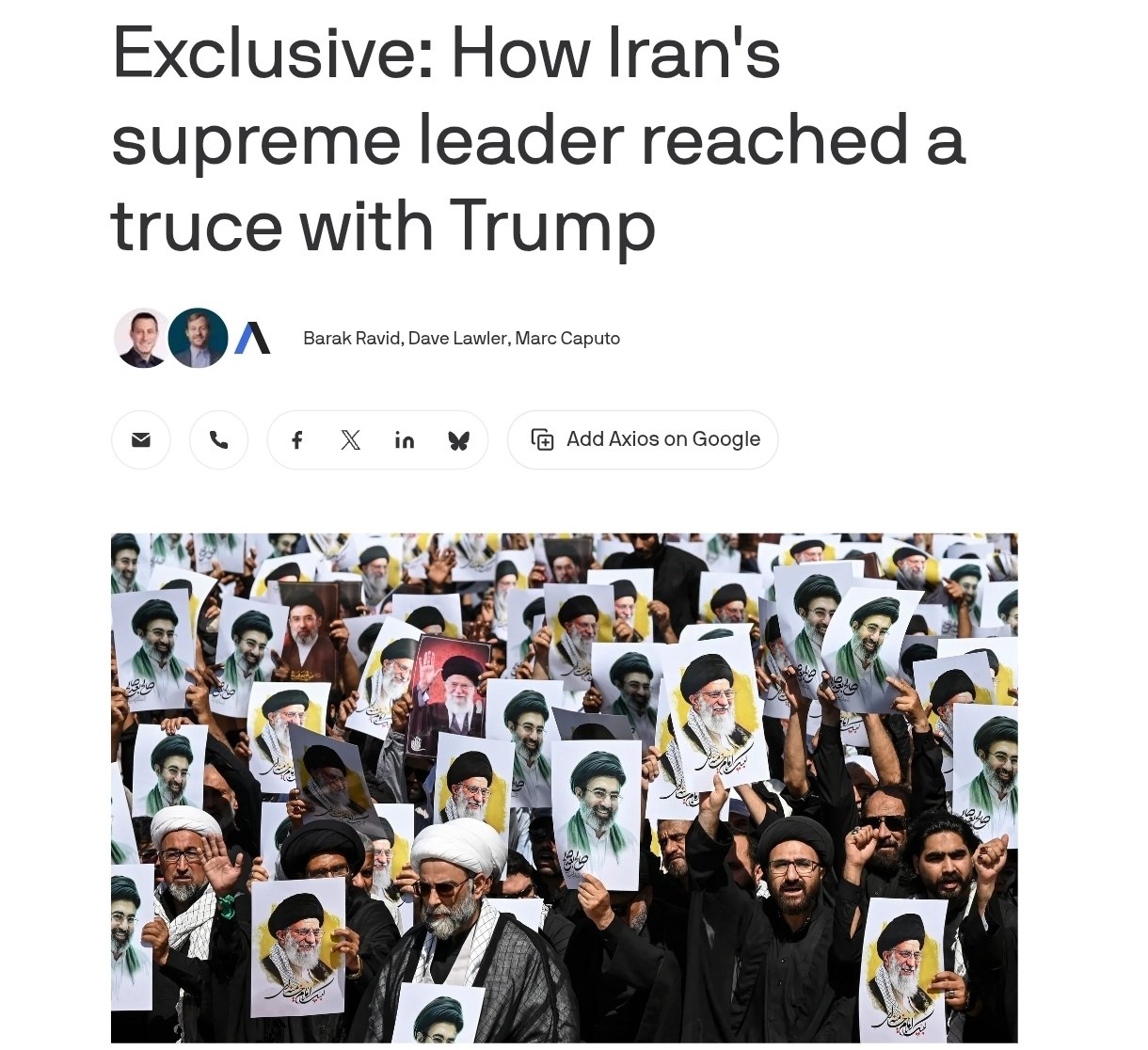 За даними американського сайту Axios, проривом на переговорах стала згода верховного лідера Муджтаби Хаменеї на перемир'я зі США. Як повідомляють джерела Axios, уперше з початку війни лідер країни доручив своїм переговорникам рухатися до угоди.