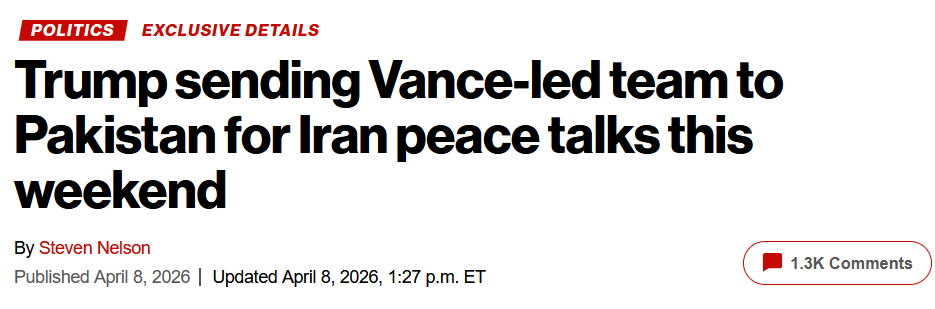 Тим часом прес-секретар Білого дому Керолайн Лівітт повідомила на брифінгу, що віце-президент Джей Ді Венс, а також спецпредставники Стів Віткофф і Джаред Кушнер братимуть участь у переговорах з Іраном в Ісламабаді цієї суботи.