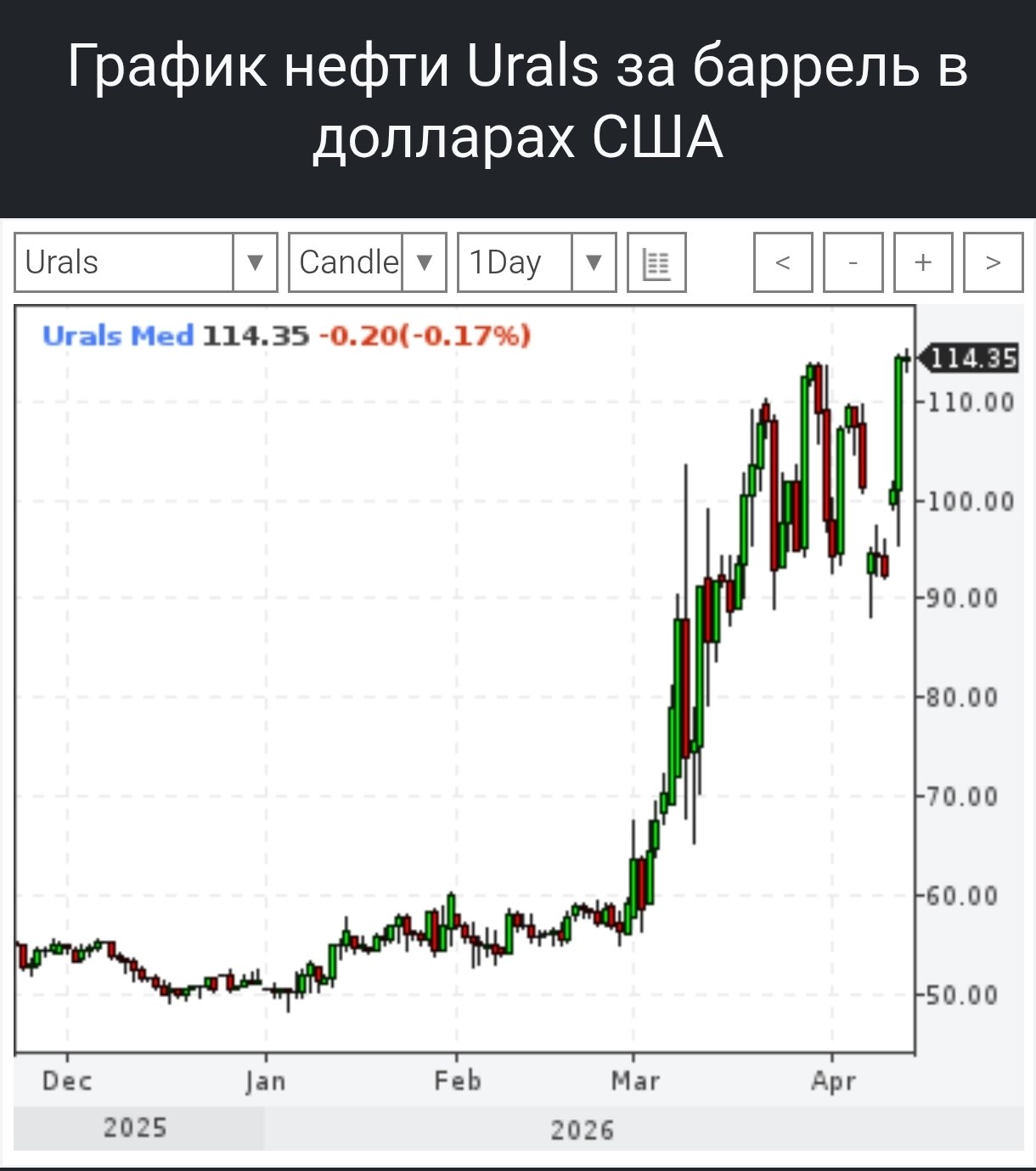 Тим часом, ціна російської нафти різко підскочила до 114 доларів за барель.