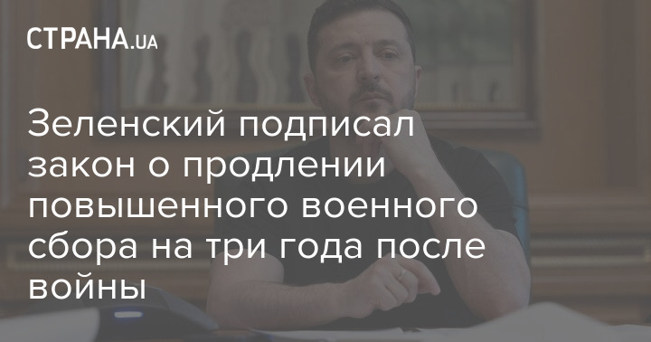 Президент України Володимир Зеленський підписав закон №15110 щодо продовження дії підвищеного військового збору (5%) на три роки після завершення війни.