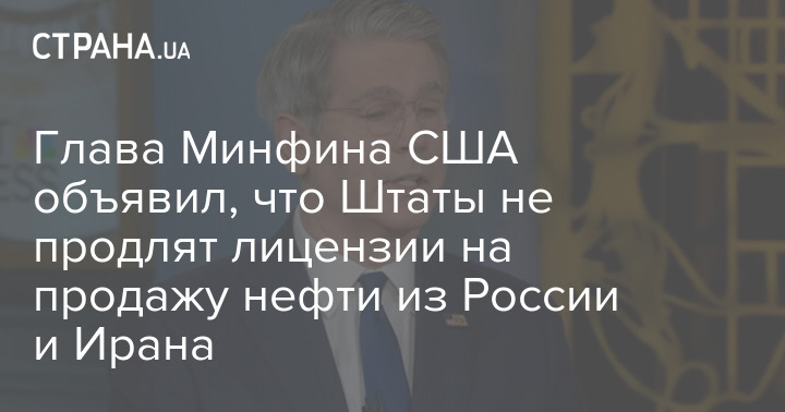 Глава Мінфіну США оголосив, що Штати не продовжать ліцензії на продаж нафти з Росії та Ірану