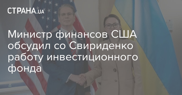 Прем'єр-міністр Юлія Свириденко обговорила з міністром фінансів США Скоттом Бессентом роботу Фонду інвестицій у відновлення України, створеного у рамках ресурсної угоди між Києвом та Вашингтоном.