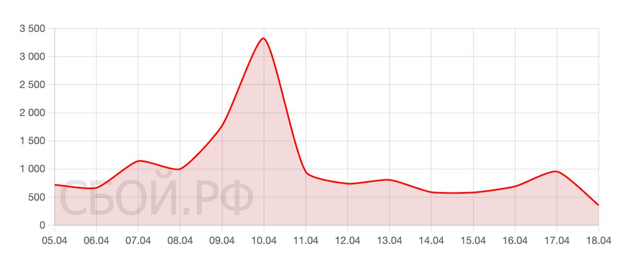 За інформацією сервісу "Збій РФ", за останні кілька днів кількість скарг на роботу Телеграм трималася на рівні 500-700 на день, а вчора підскочило понад 900.