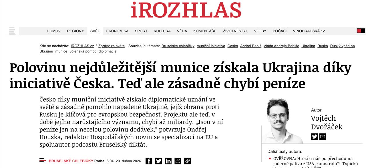 Проекту не вистачає мільярдів євро, у бюджеті є гроші лише трохи менше половини поставок, кажуть експерти. Вони вважають, що причин пробуксування ініціативи кілька: економічні наслідки війни на Близькому Сході та небажання інвестувати через Чехію, яка сама не робить внесків у власну ініціативу, хоча й отримує прибуток від податків оборонної промисловості.