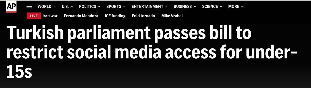 Парламент Туреччини ухвалив закон, який забороняє використовувати соціальні мережі громадянам молодше 15 років і вводить нові правила для цифрових платформ, включаючи компанії - розробники відеоігри.