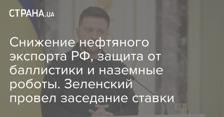 Зниження нафтового експорту РФ, захист від балістики та наземні роботи. Зеленський провів засідання ставки