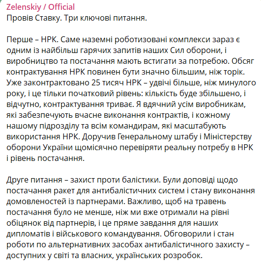 Президент України Володимир Зеленський повідомив про результати чергової ставки верховного головнокомандувача.