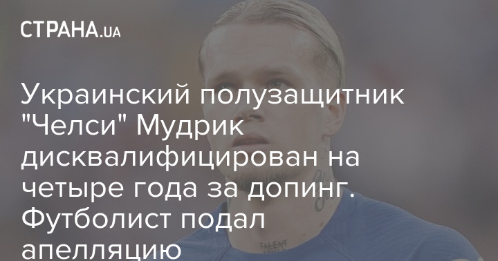 Українського півзахисника "Челсі" Мудріка дискваліфіковано на чотири роки за допінг. Футболіст подав апеляцію