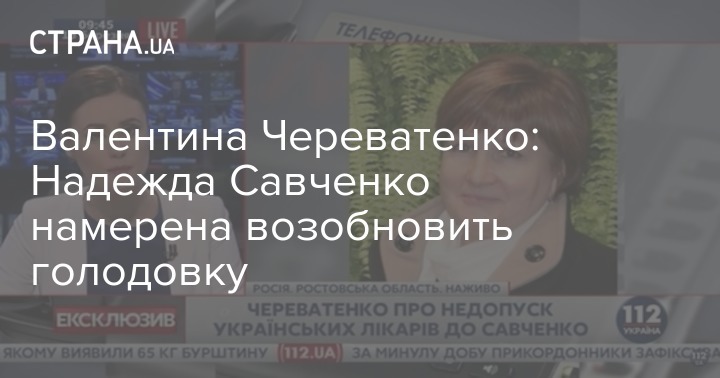 Надежда Савченко заявила, что продолжит голодовку, сообщила в эфире 112.ua член общественной наблюдательной комиссии Ростовской области Валентина Череватенко, которая 12 марта вместе с Владимиром Катасоновым побывала в СИЗО Новочеркасска.