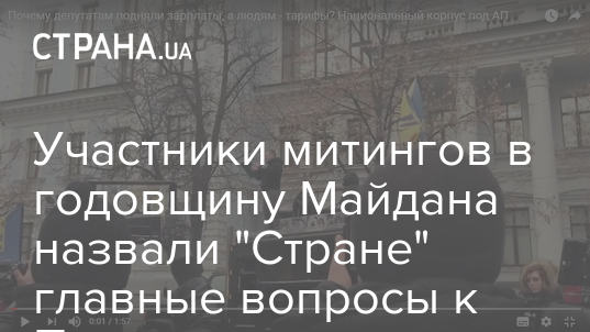 Сегодня, 21 ноября, в день третьей годовщины Майдана и Дня Достоинства и Свободы в столице проходили митинги и марши активистов. Люди собрались, чтобы почтить память восставших героев, свергших преступный режим Януковича, и задать несколько вопросов действующему президенту Петру Порошенко.
